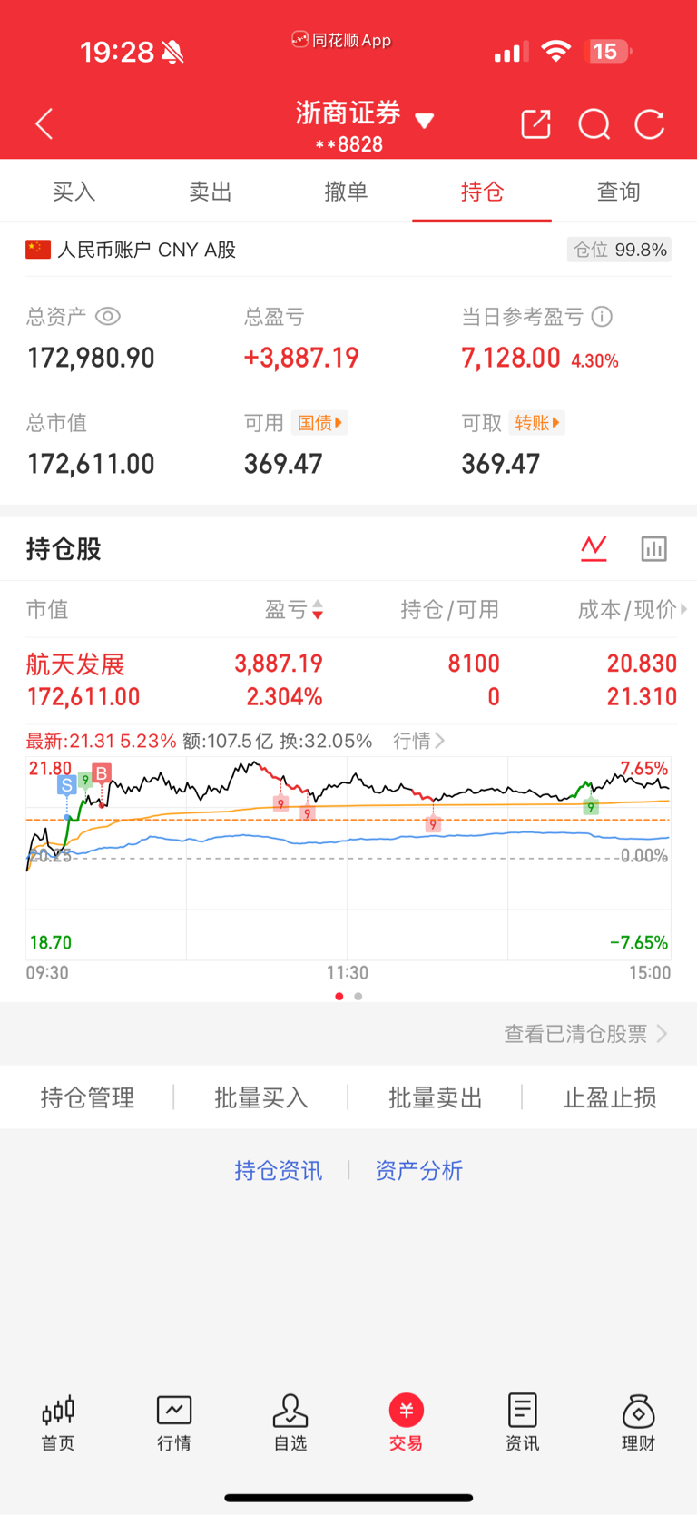 $航天发展(SZ000547)$ 继续看好。在外边躲了一天,昨天接回,今天做了个反T,气气死,格局住,钱不多,不怕他割 哈哈哈