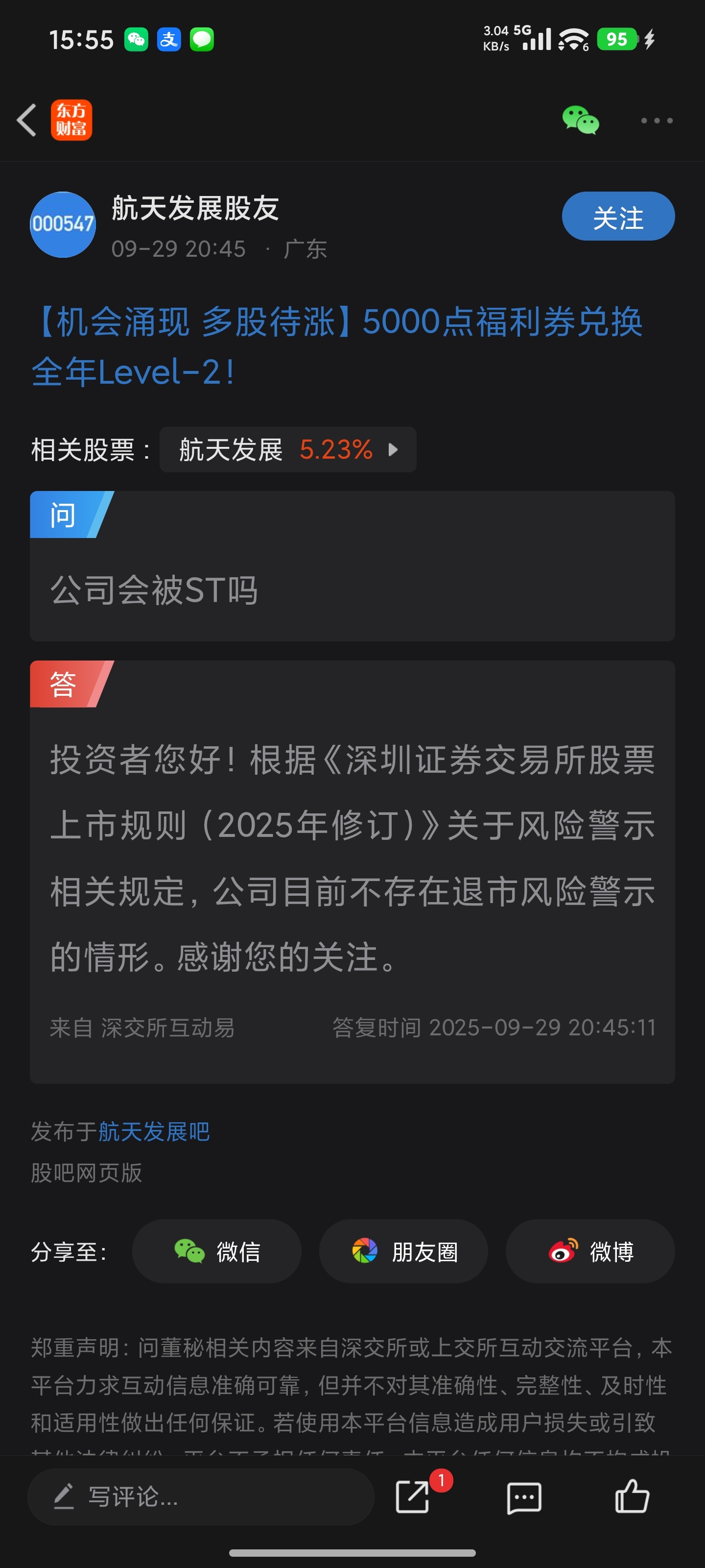 公司已经不止一次声明目前没有被st风险