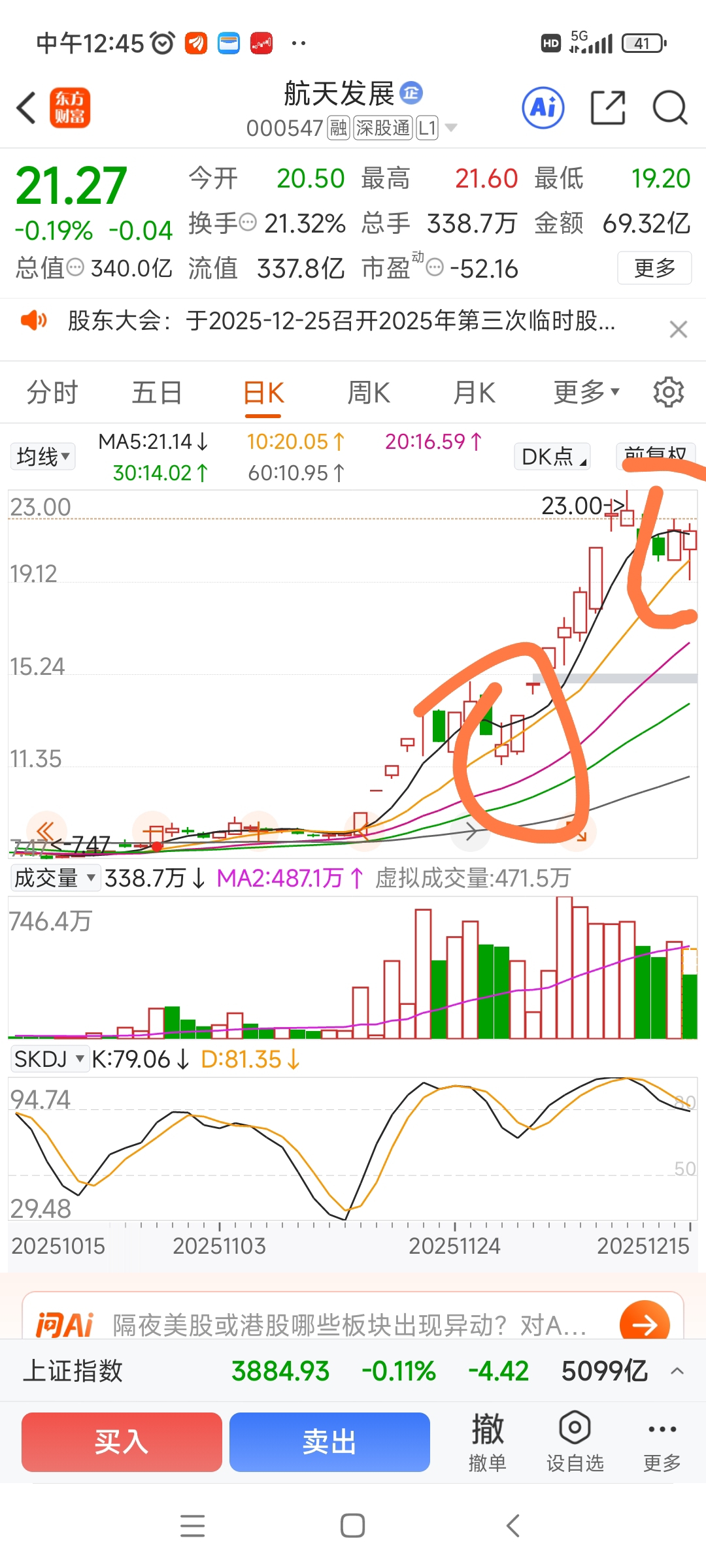 $航天发展(SZ000547)$ 第二个老鸭头出现