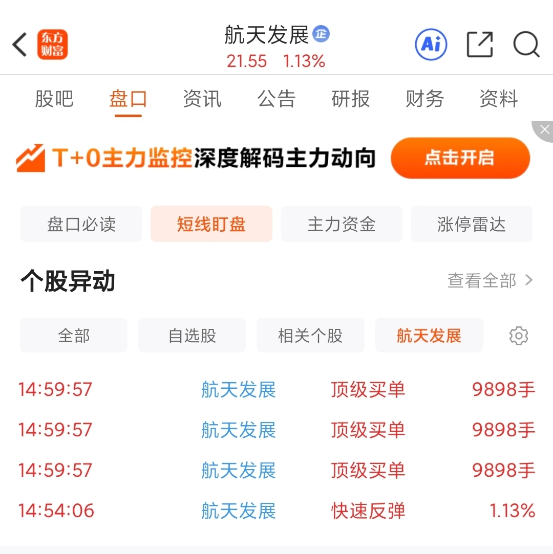 $航天发展(SZ000547)$ 真能忍,最后一分钟才出手