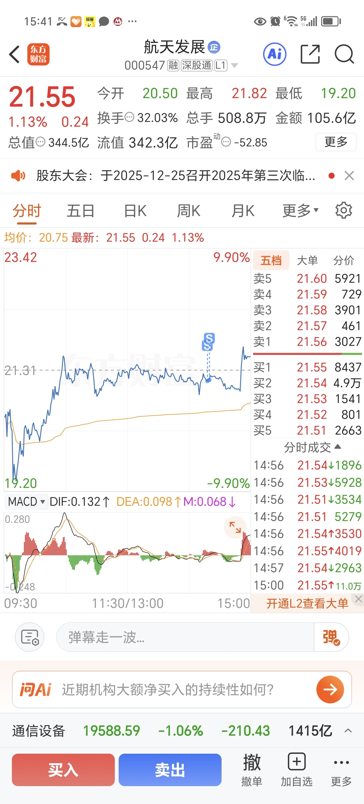 $航天发展(SZ000547)$ 本来今天红的格局一天红盘没跑 还是割肉走了 你又拉红了 真坑货 早上水下没有来得及加仓后悔呀!看这尾盘拉的 明天估计又是水下开