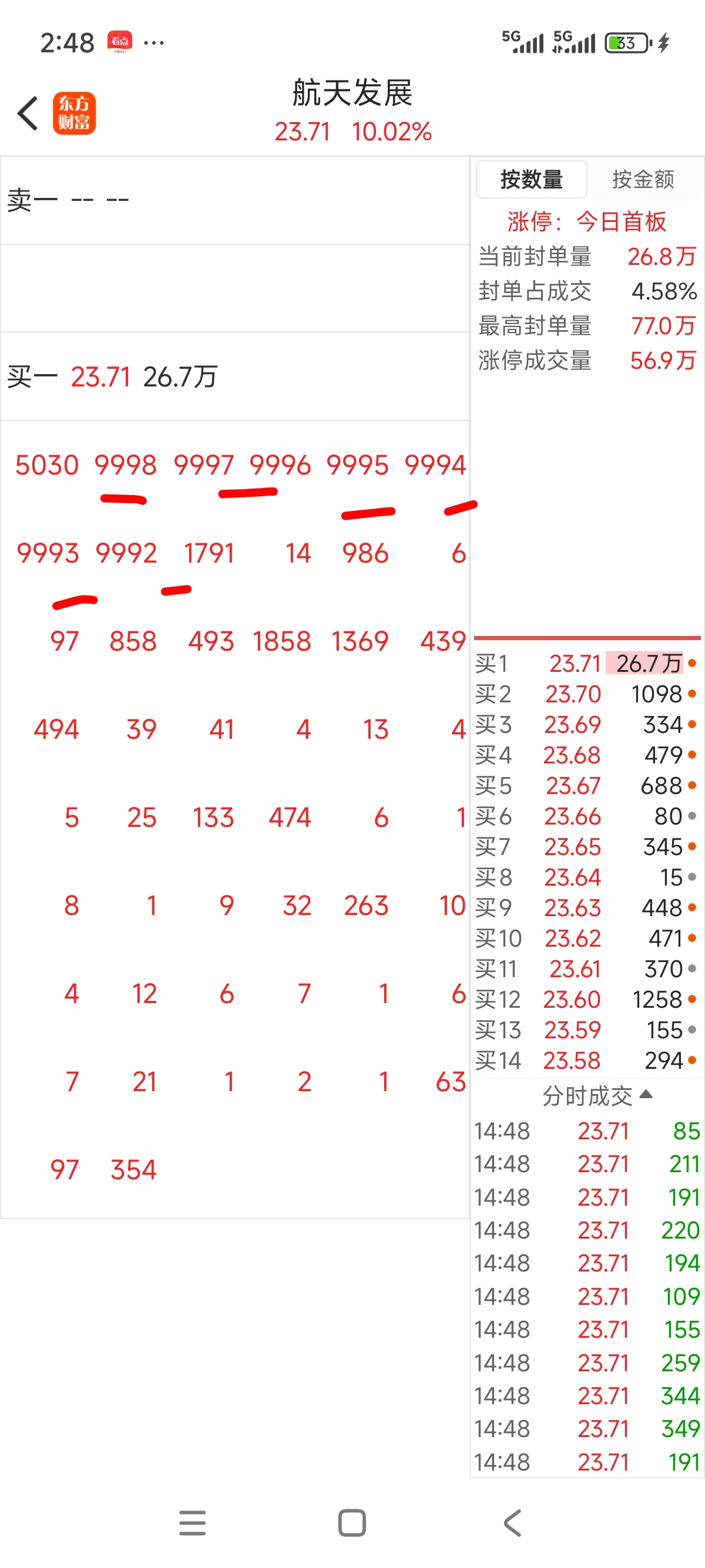 $航天发展(SZ000547)$ 这是哪个老板的单子,第一个是9999,第二个9998。。。而且都成交了,老板一直没想撤单。