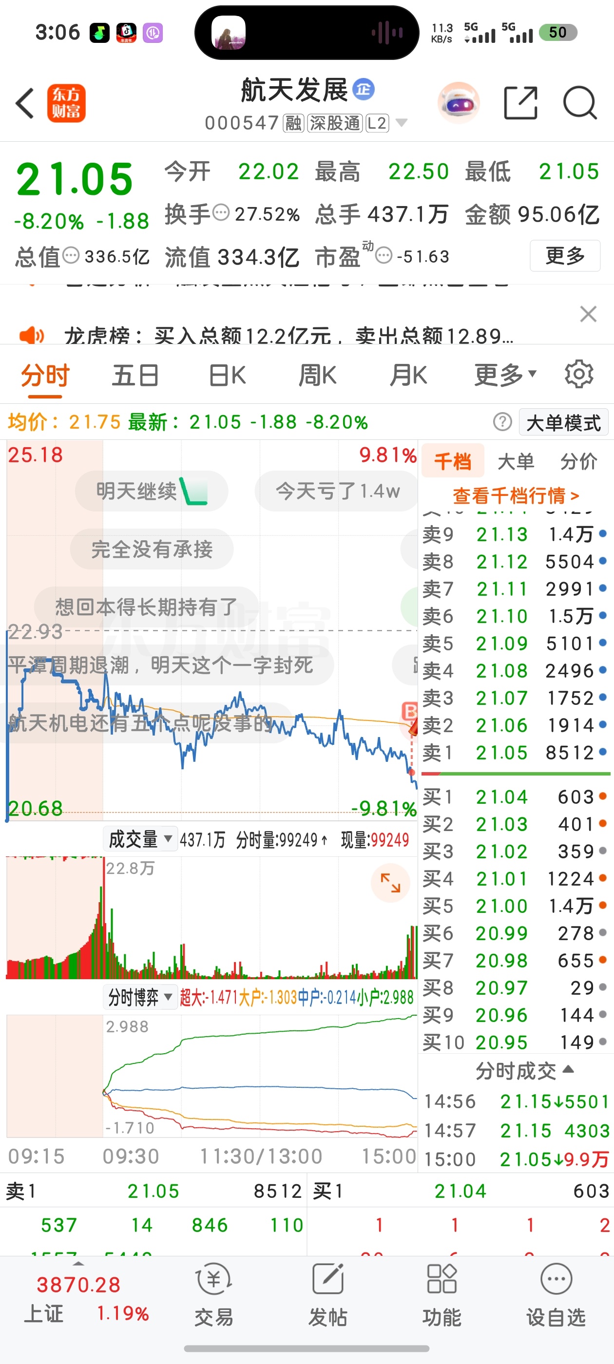 $航天发展(SZ000547)$ 拉尾盘也骂,砸尾盘也骂,最后砸盘的时候大单是流入的,今天继续加仓。