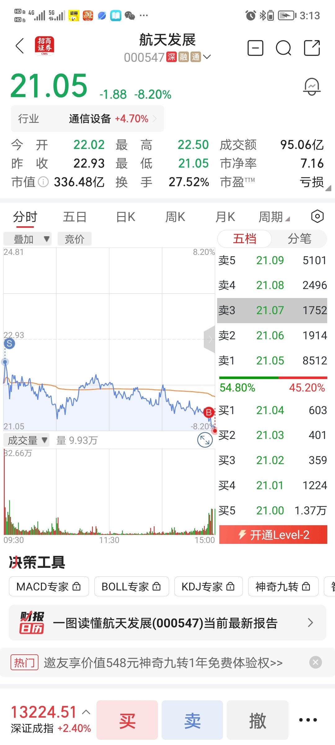 $航天发展(SZ000547)$ 没跌停已经是很强势了,还能涨,明天加油