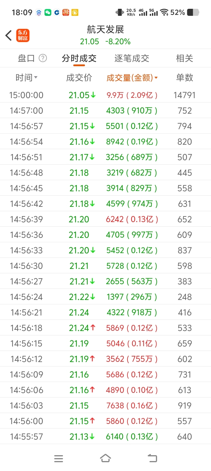 $航天发展(SZ000547)$ 这是尾盘大单抢筹