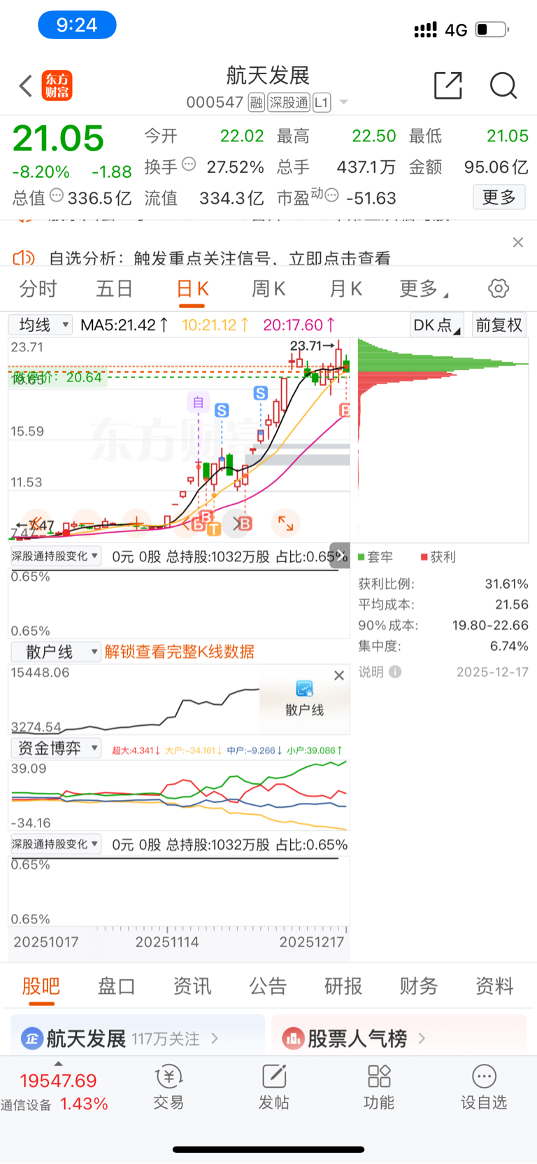 $航天发展(SZ000547)$ 兄弟们,底部走上来的今天过来买1000股明天陪你们吃跌停板