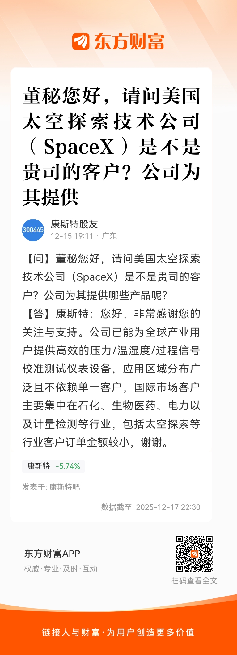 董秘您好,请问美国太空探索技术公司(SpaceX)是不是贵司的客户?公司为其提供哪些产品呢?
