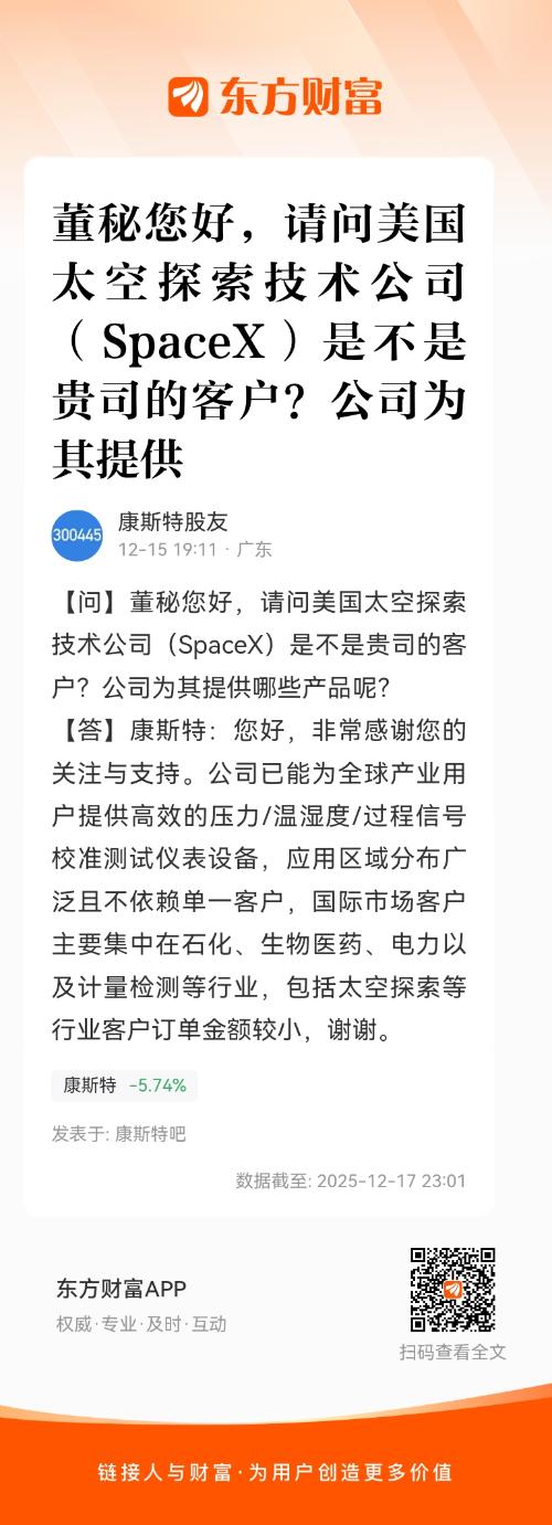 董秘您好,请问美国太空探索技术公司(SpaceX)是不是贵司的客户?公司为其提供哪些产品呢?