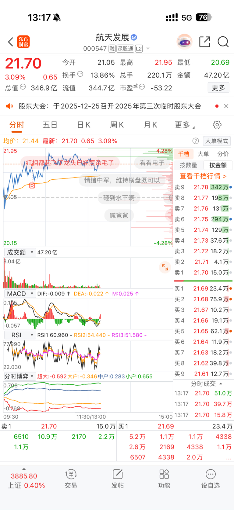 $航天发展(SZ000547)$ 对不起大家,我买到压力位了