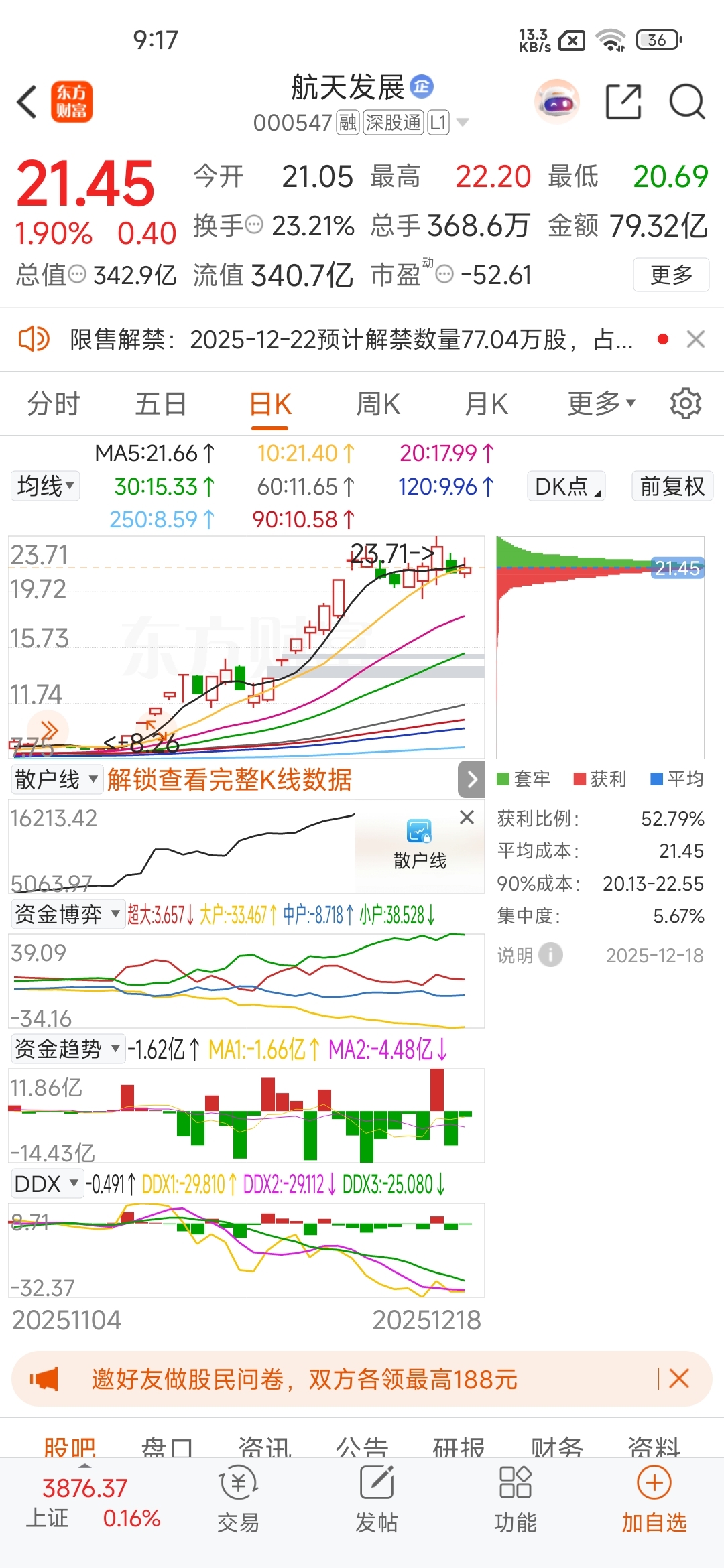 $航天发展(SZ000547)$ 卧龙刚刚发了小视频,讲解下航天发展的筹码峰和未来的投资机会,喜欢的朋友们稍后等放行了,可以观看一下,或许有所帮助吧。