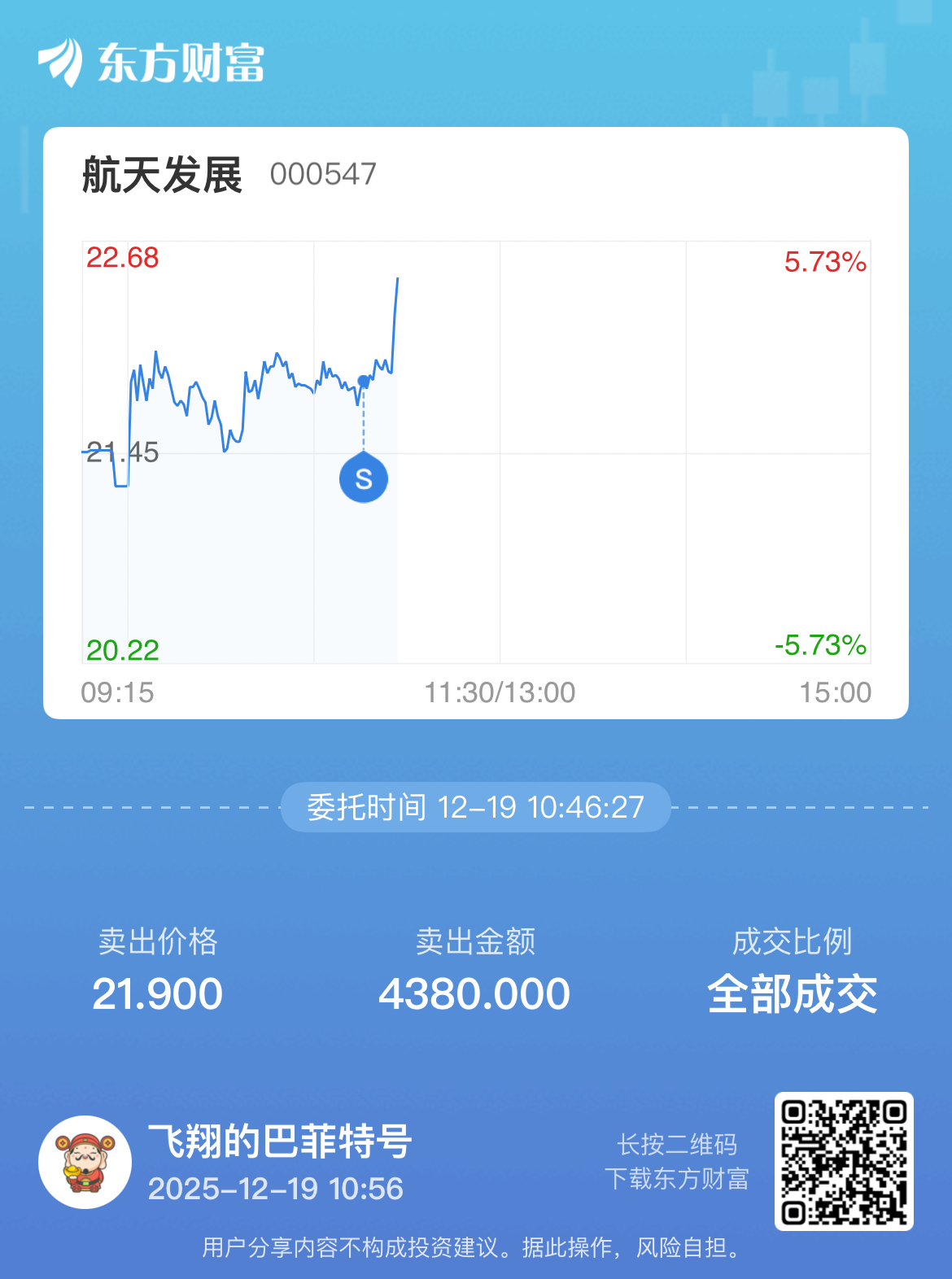 $航天发展(SZ000547)$ 我点的火