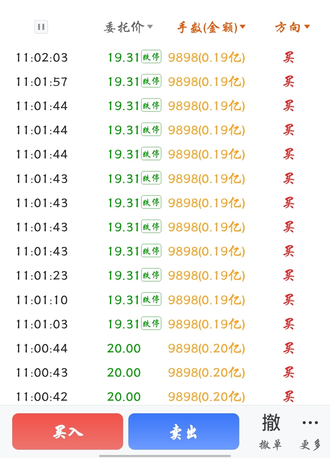 跌停挂这么多9898