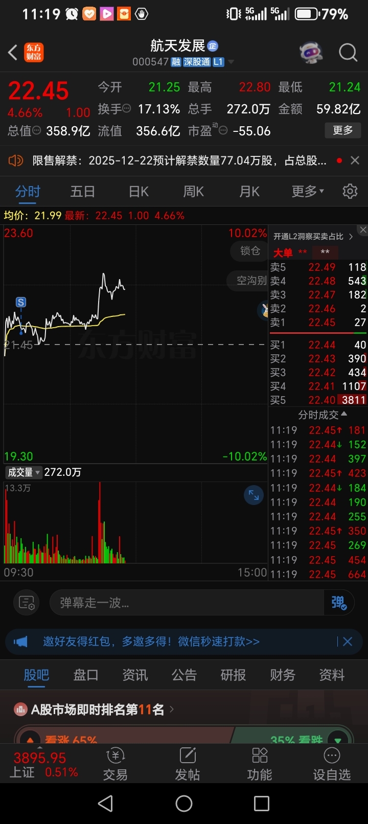$航天发展(SZ000547)$ 每天开盘半个小时都涨不了五个点,