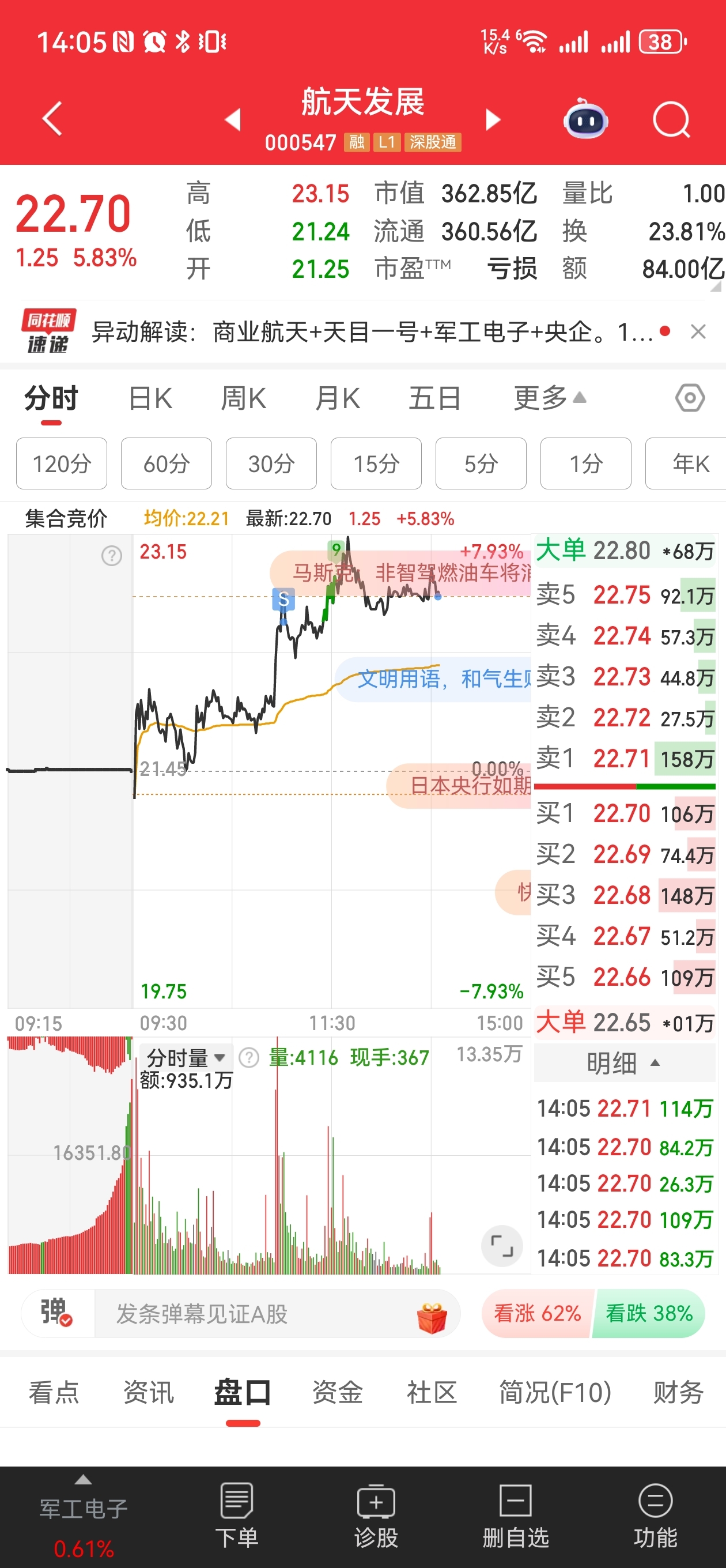 $航天发展(SZ000547)$ 全清了,大概率没结束,最近短线赢麻了,留点仓位出来