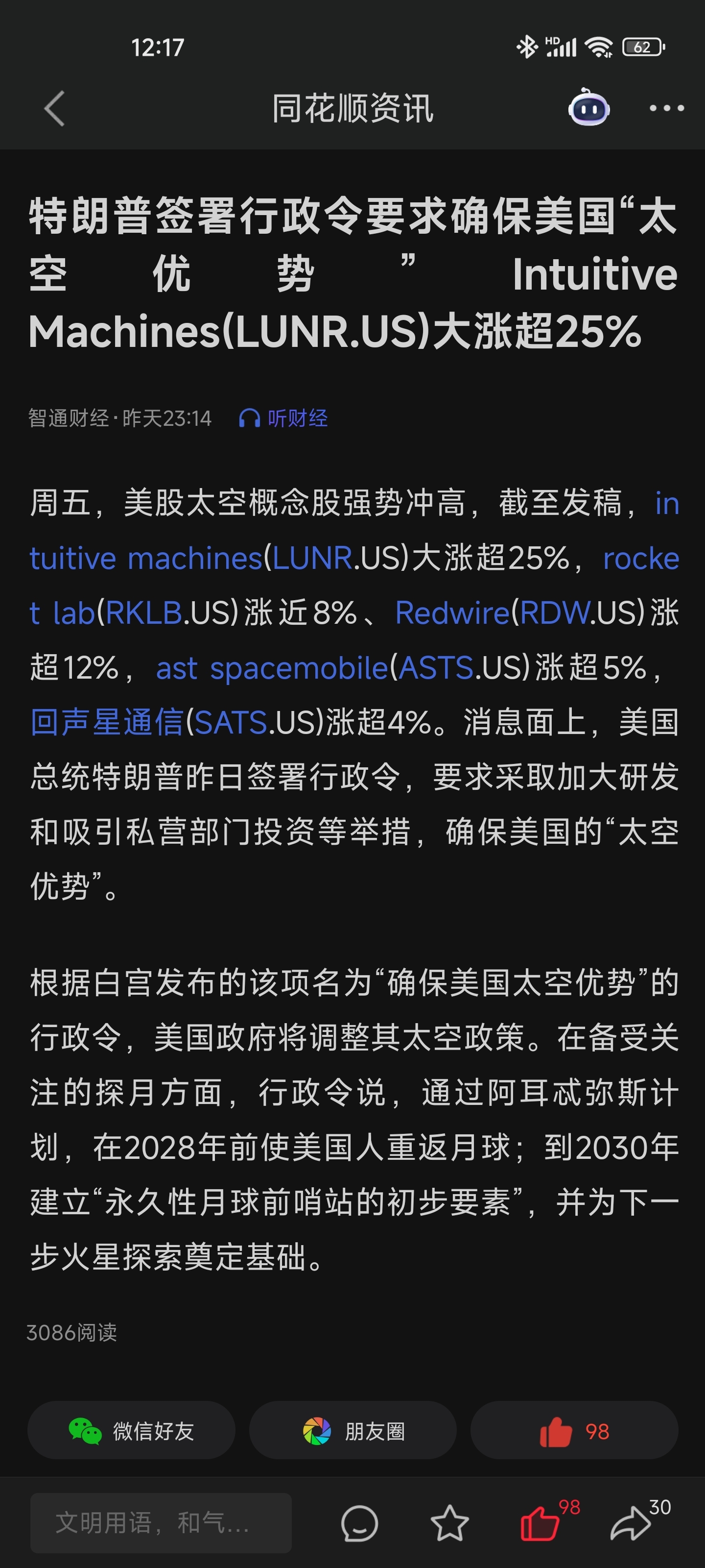 $航天发展(SZ000547)$ 美股航天概念股涨疯了,下周航天起飞