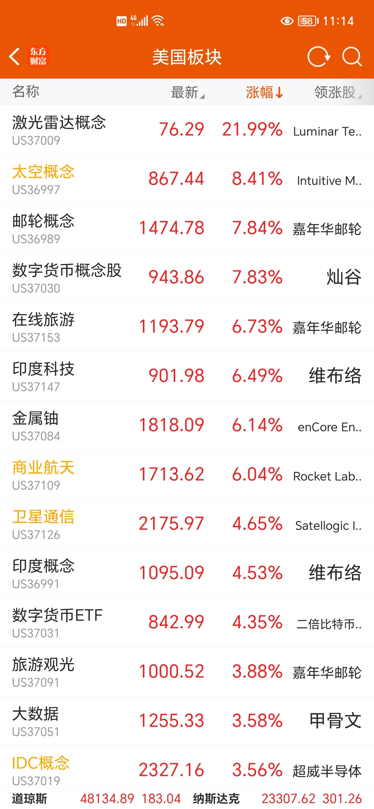 $航天发展(SZ000547)$ 这是礼拜五美股的板块收盘涨幅,注意,礼拜四这两个板块涨幅不到4%。