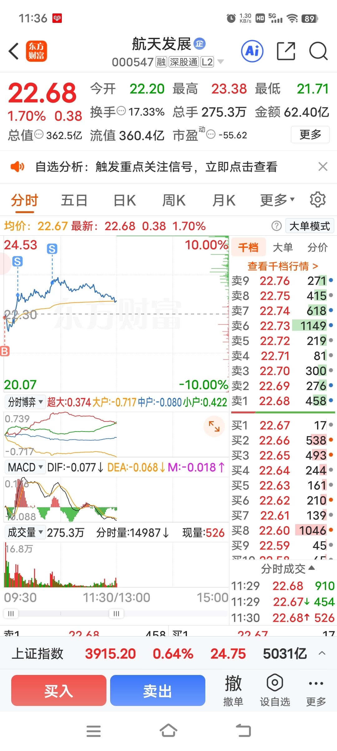 $航天发展(SZ000547)$ T完下班,明日在战!