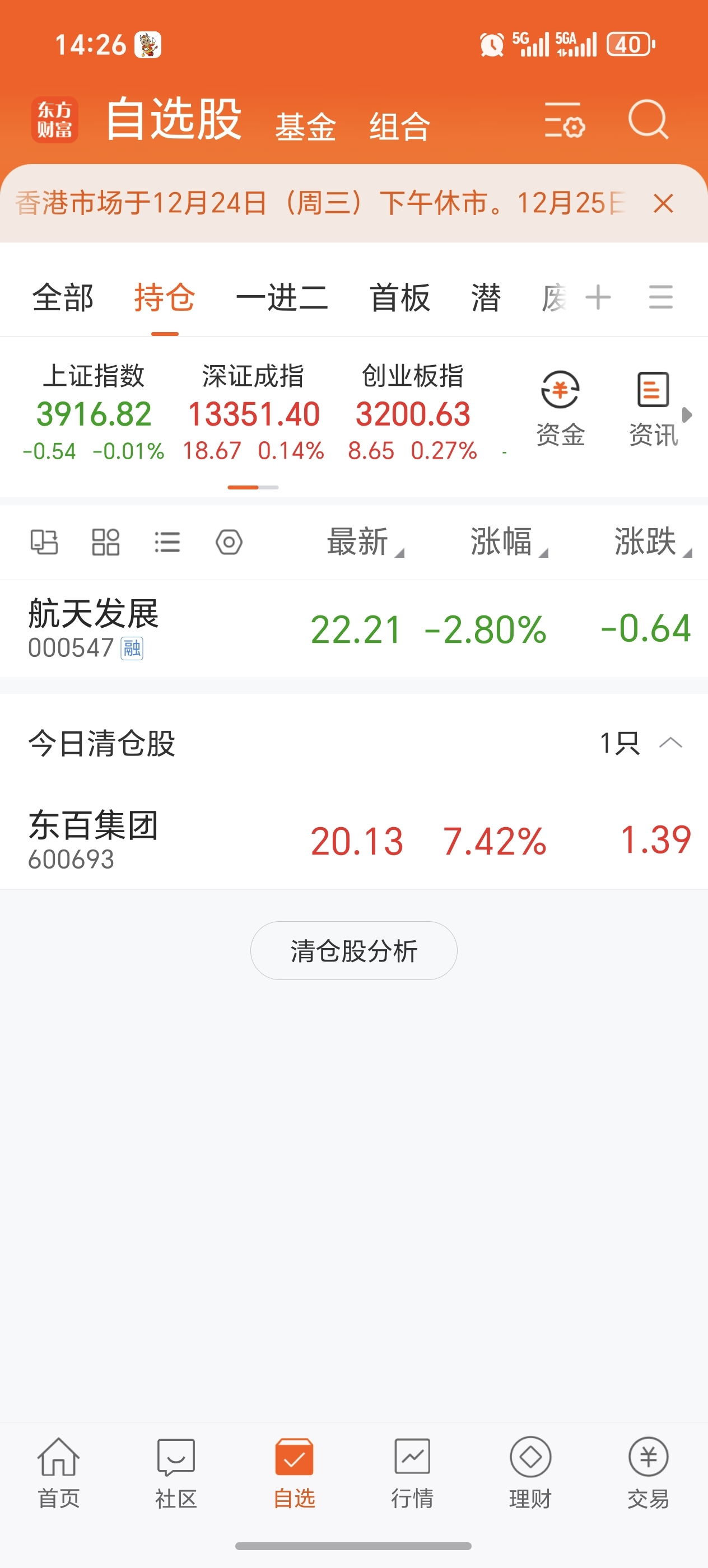 $航天发展(SZ000547)$ 东百走了,手里只剩航发了