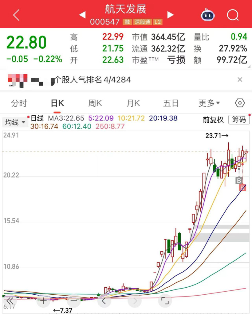 这一波商业航天我认为自己节奏还不错。先是航天动力吃了一波,上周航天机电也吃了一口,上周五大减仓昨天清仓。这两天抱住航天发展。