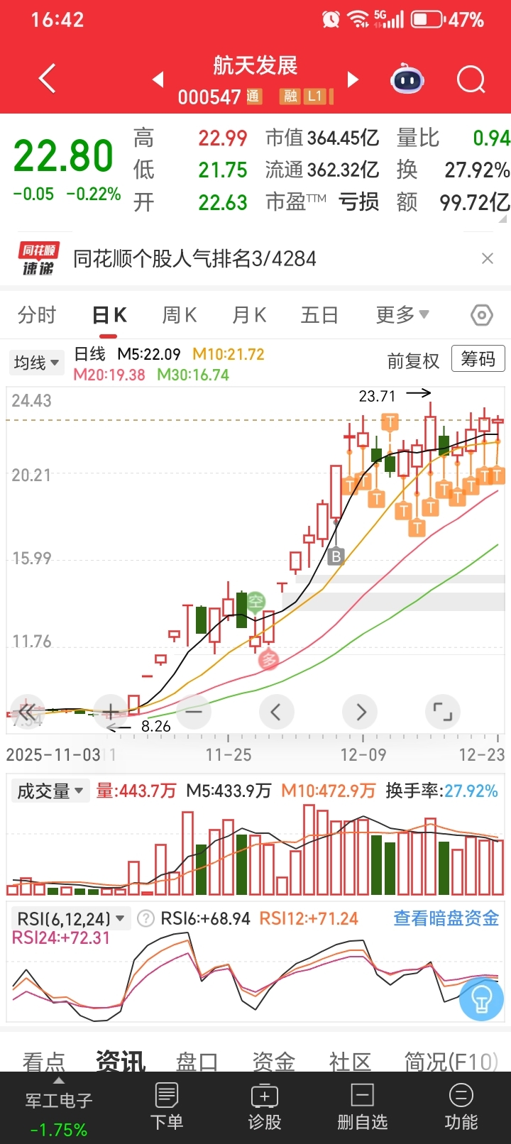 $航天发展(SZ000547)$ 股票是反人性的,全是在算卡异动,小心这几天高台跳水