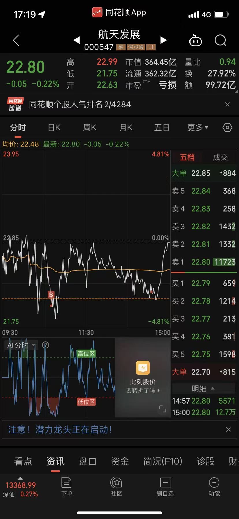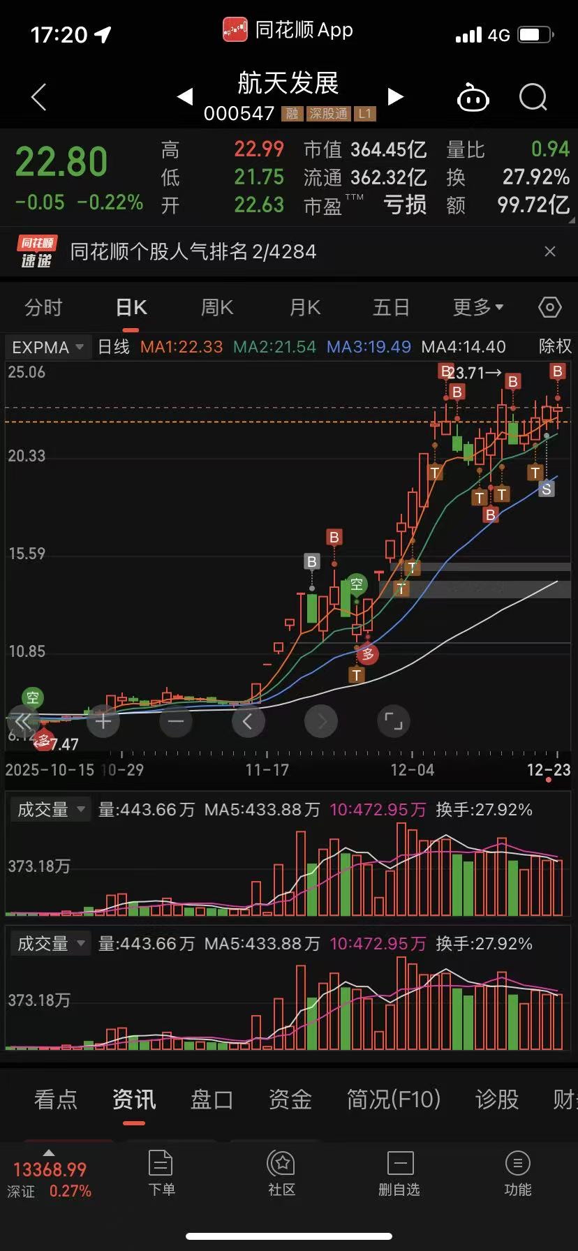 $航天发展(SZ000547)$ 昨天清仓,今天没忍住又进来了,
