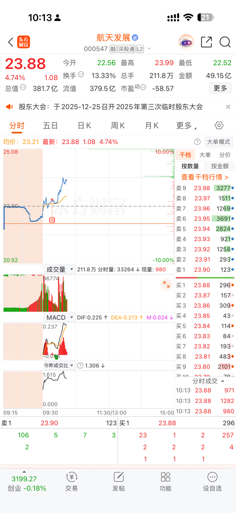 上午我又加了一笔赌它突破的仓位,这点钱是我支持国家的商业航天!
