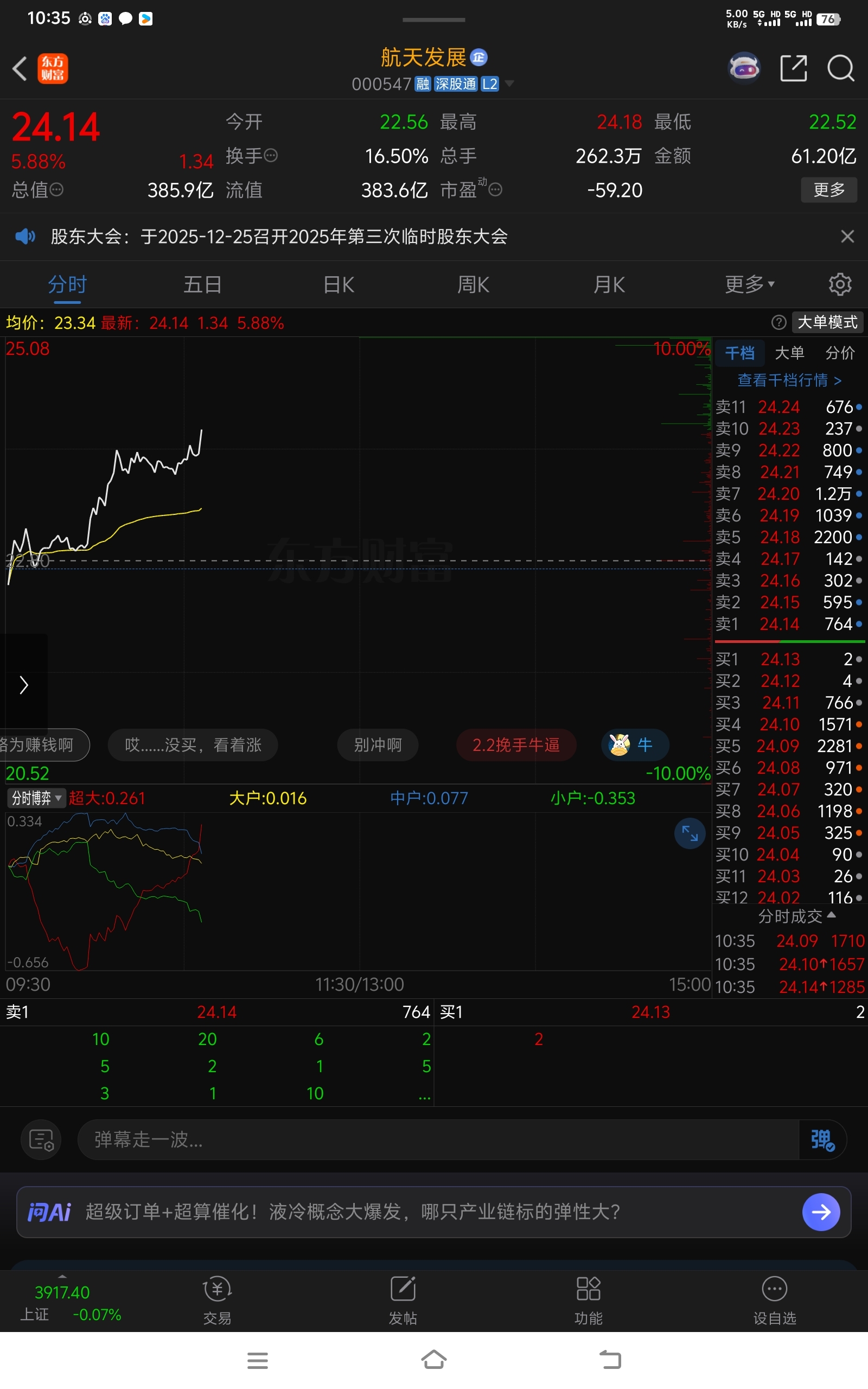 $航天发展(SZ000547)$ 散户咋想的呀?主力都在拼命往上拉,散户在那里卖飞