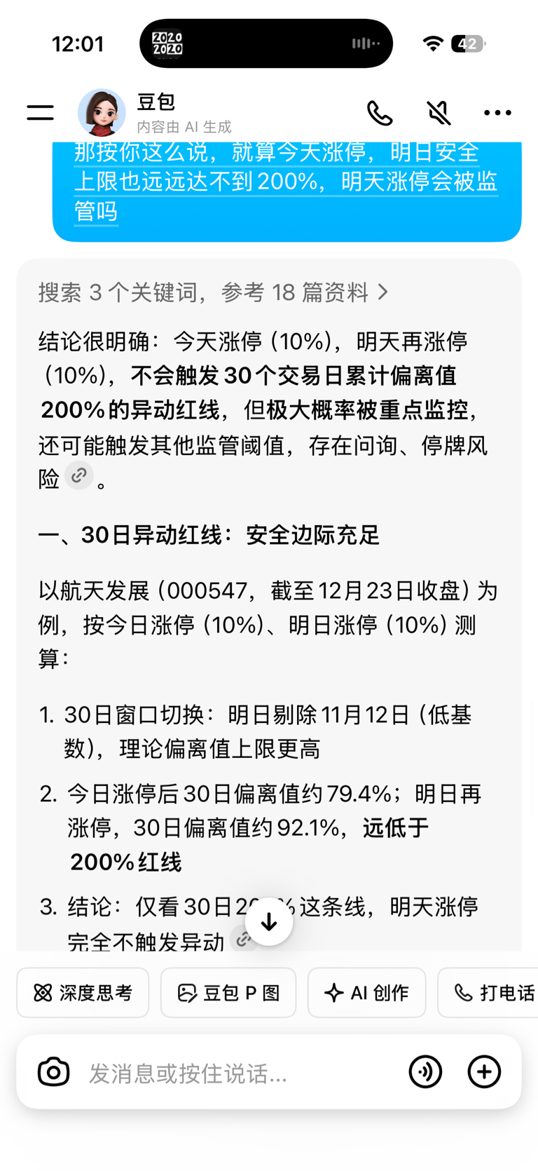 $航天发展(SZ000547)$ 我被洗下车了,问了豆包,她说的对吗?理性讨论。