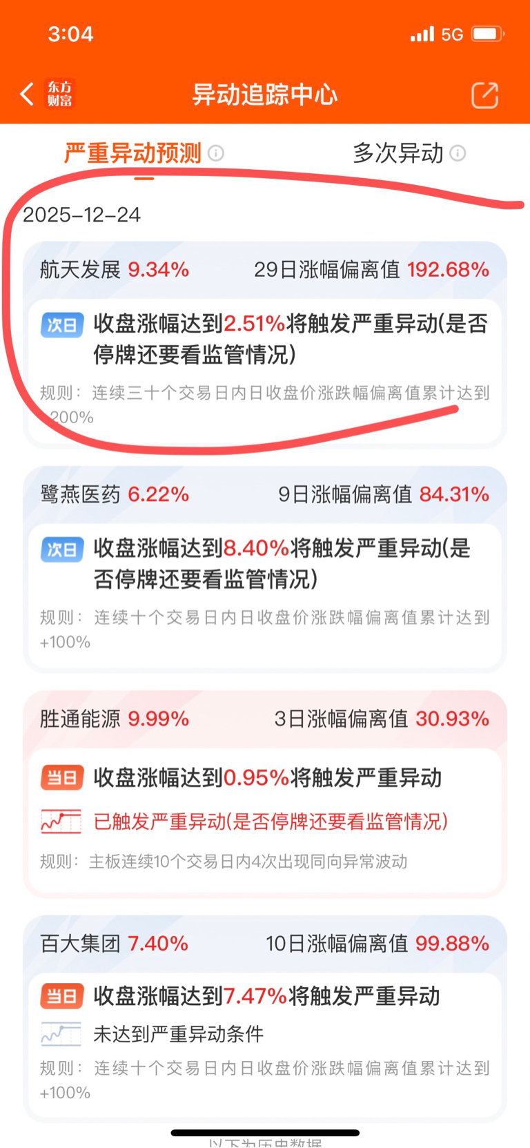 $航天发展(SZ000547)$ 有懂算的大哥吗,明天是不是不能涨超2.5个点?涨超了就触发严重异动