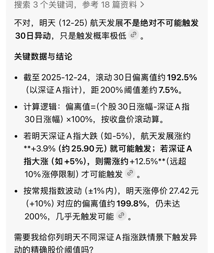 $航天发展(SZ000547)$ 自己就不能动手查查,明天只要大盘不跌太多就不可能触发异动