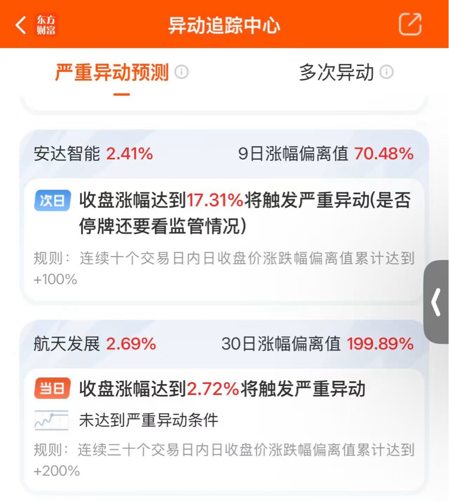 $航天发展(SZ000547)$ 竟然还一群人在说超了监管异动的,东财都有实时公布,自己不会看吗,没有超,不然主力尾盘集合竞价砸十几个亿不是白压了?说今天主力是出货不是因为压异动的也是憨憨,这两天商业航天的板块情绪,根本不愁人进场承接,主力随便可以在八九个点震荡出货甚至板上出货都有人接,故意压在低位出?