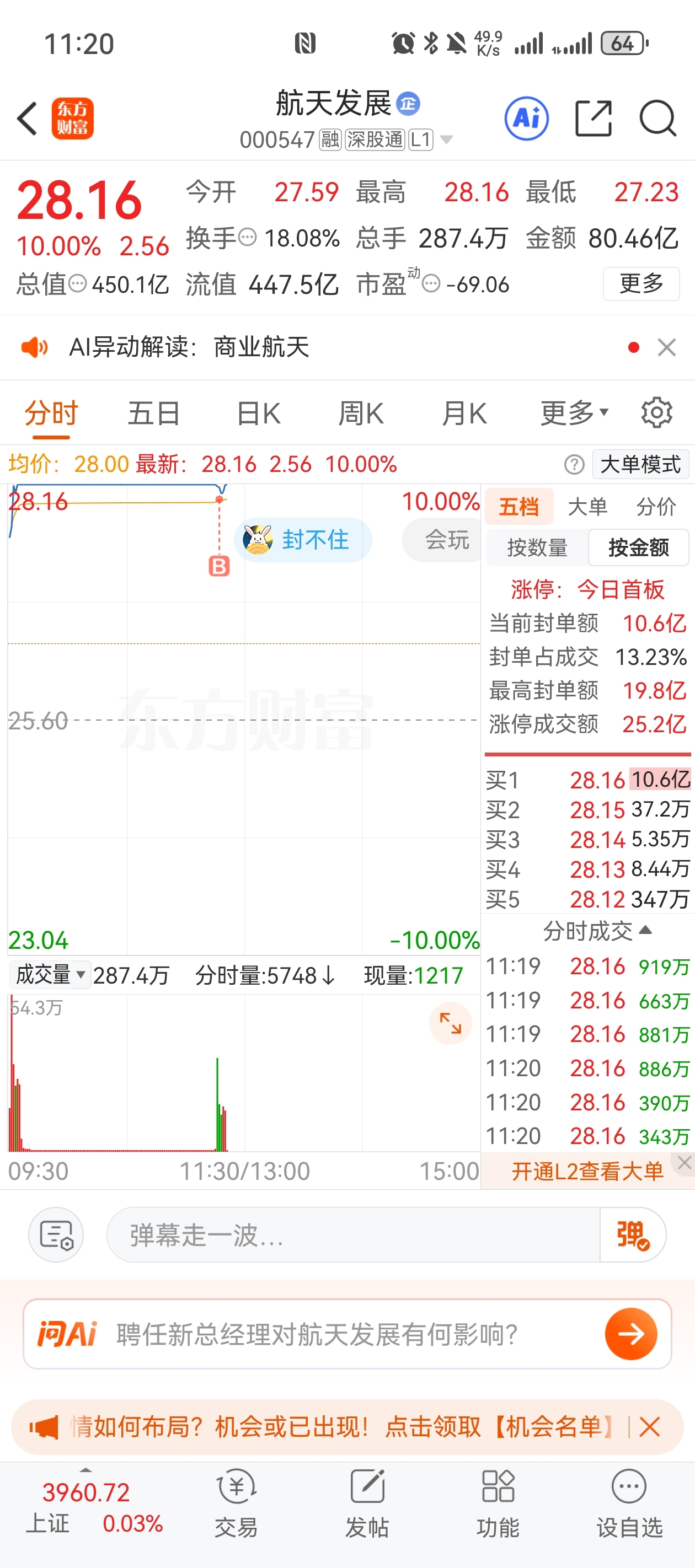 $航天发展(SZ000547)$ 重仓猛干