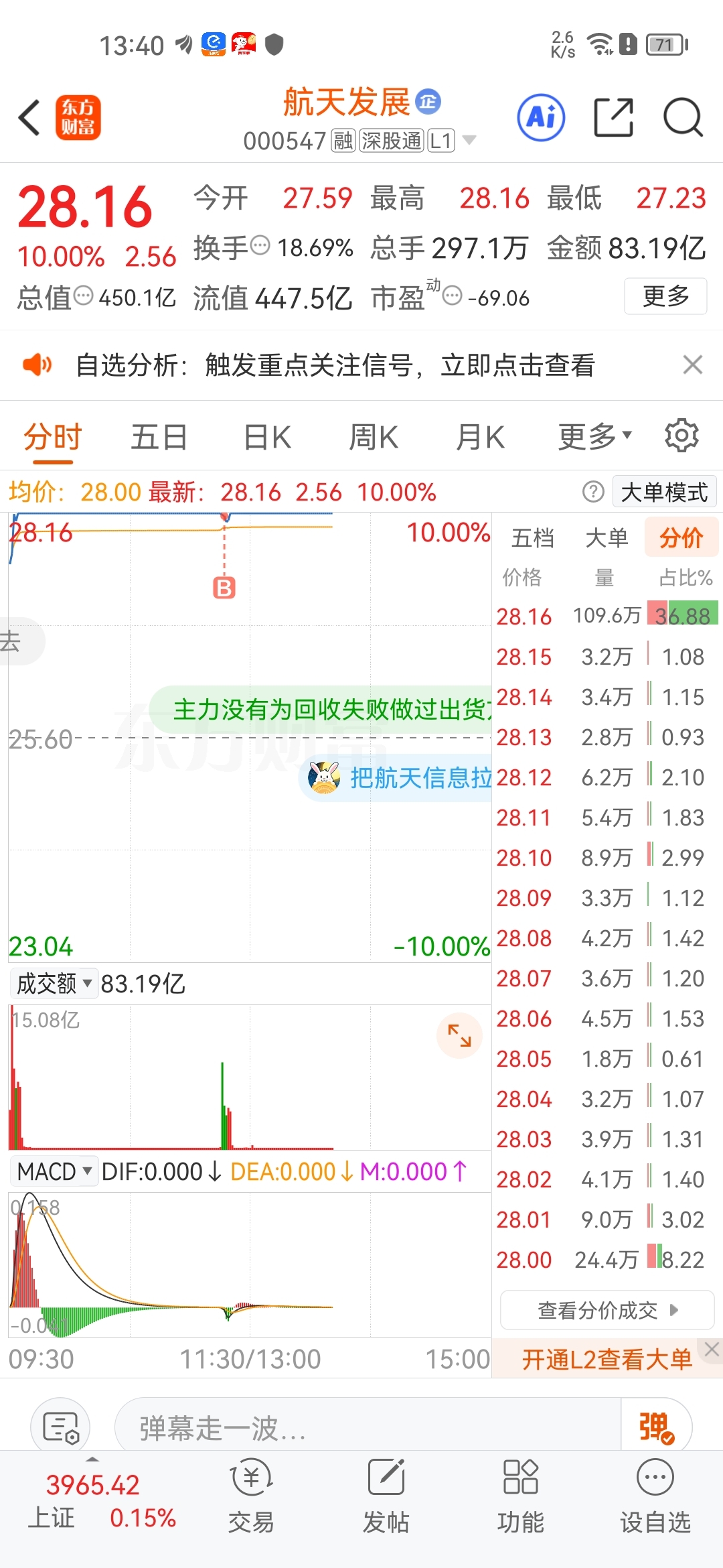 $航天发展(SZ000547)$ 周一生死有命富贵在天