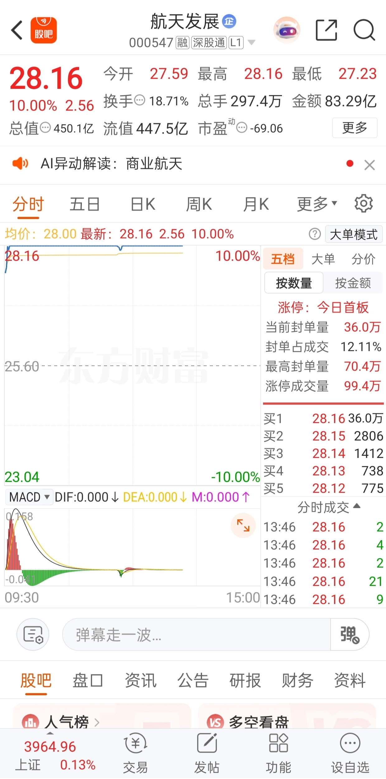 欢呼声,掌声在哪里???昨天早盘介入的个股$航天发展(SZ000547)$