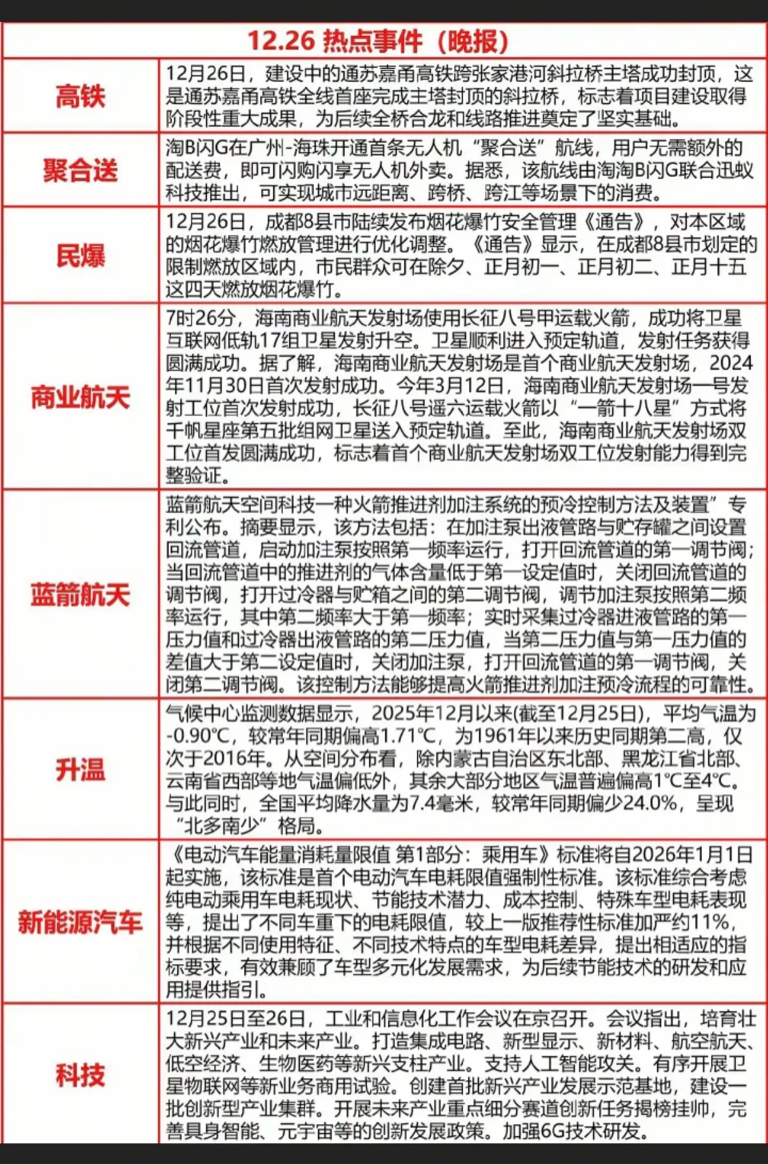 12.26周五晚间 重要财经信息汇总!