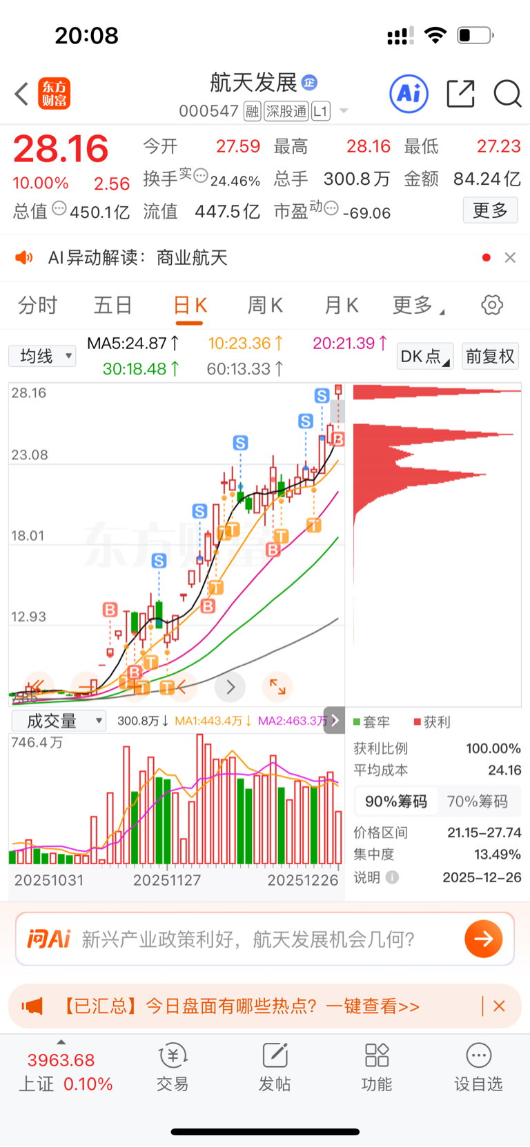 $航天发展(SZ000547)$ 滚动做T,前天卖了半仓,今天加回来了