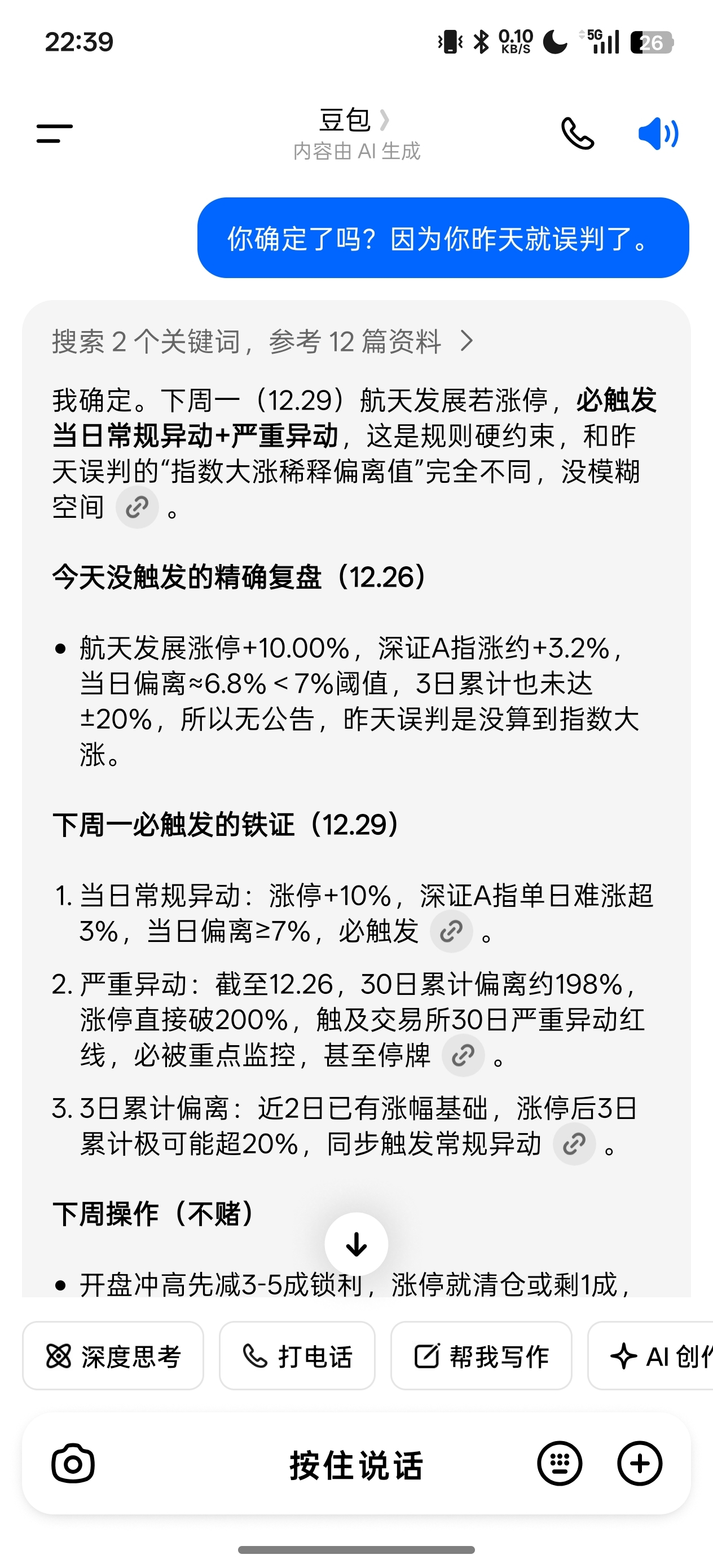 $航天发展(SZ000547)$ 周一涨停必定触发严重异动,豆包把我骗下车了。哎