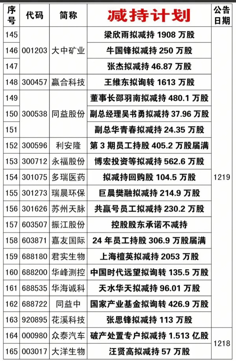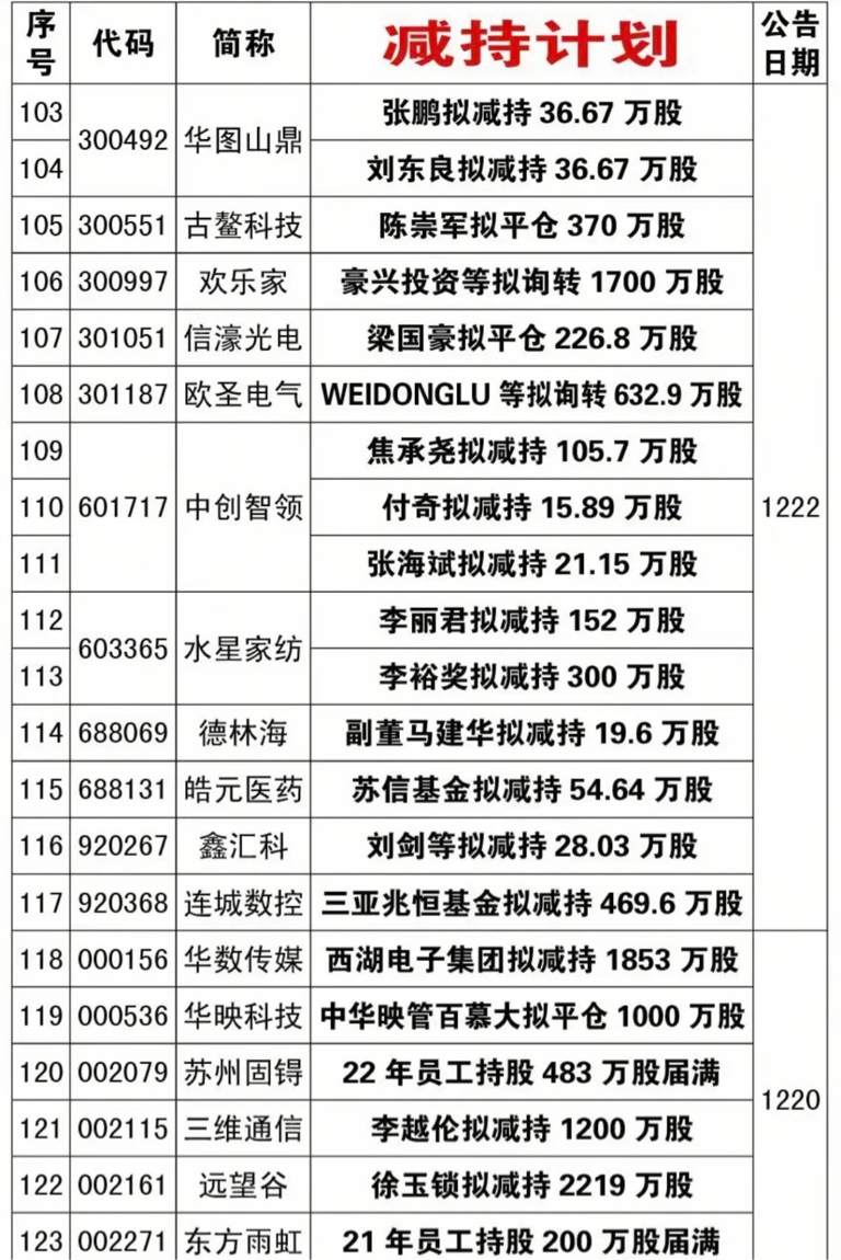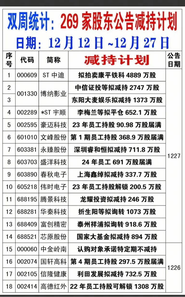 12.12~12.27期间,累计有120家公司披露减持计划。