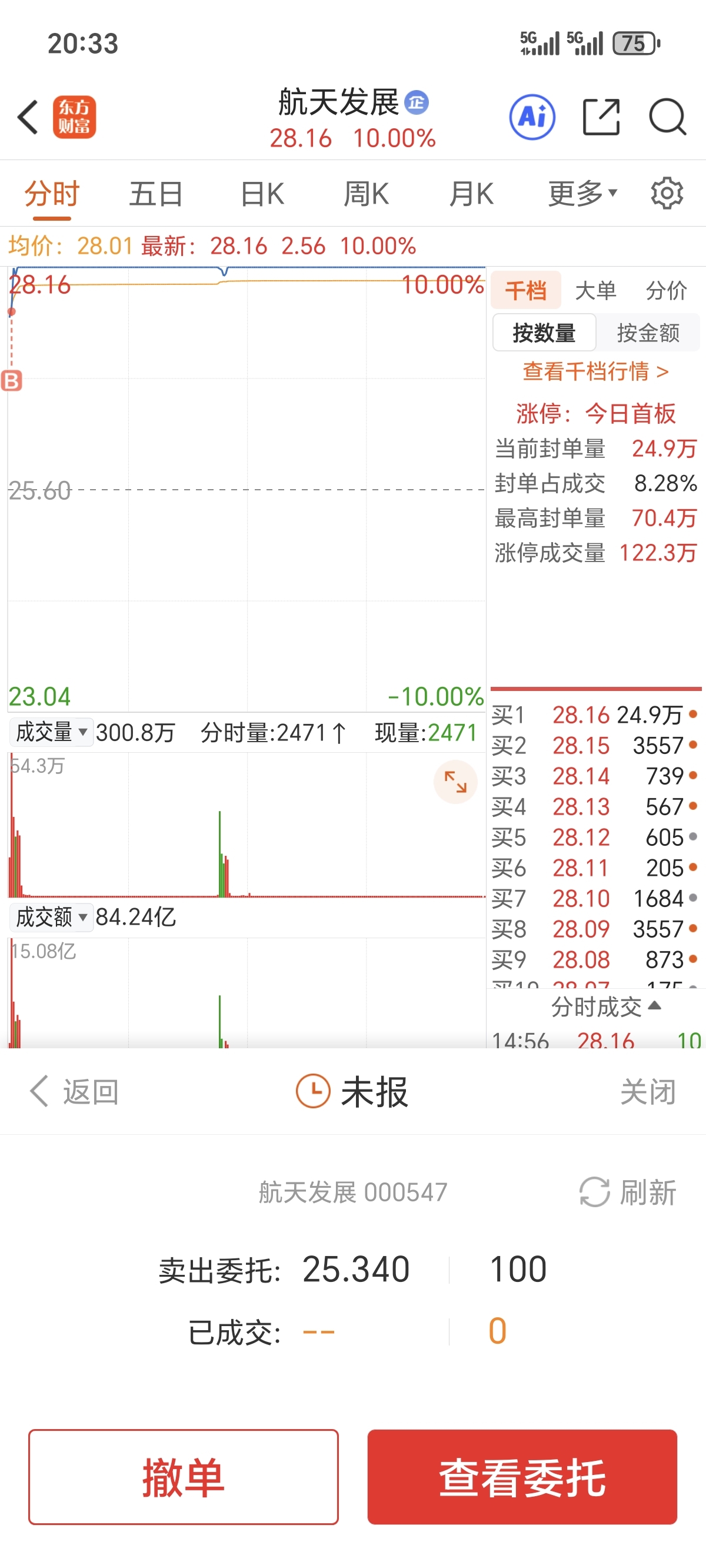 $航天发展(SZ000547)$ 主力周五跑了一百多亿,全是小散接盘了,顶板的也都是一两手的小单子,地板隔夜单已经挂了1000多万手了,我先挂跌停隔夜单跑了,估计最少要三个一字跌停才能人出去,跟去年的大众交通一样总共六个跌停,韭菜们都快去挂跌停逃命去吧