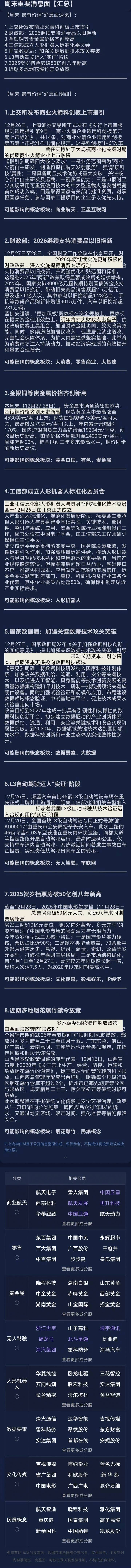 $航天发展(SZ000547)$ 周末重要消息#有色板块持续走强 !两大龙头创历史新高# $有色金属(BK0478)$ #碳酸锂期价突破13万元!锂矿股如何布局?# $能源金属(BK1015)$ #商业航天赛道爆火:2026年行业或迎质变#