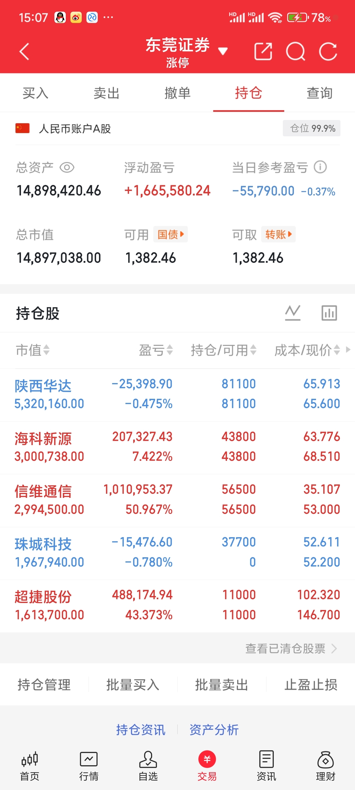 目前持有:陕西华达 海科新源 珠城科技 信维通信 超捷股份。
