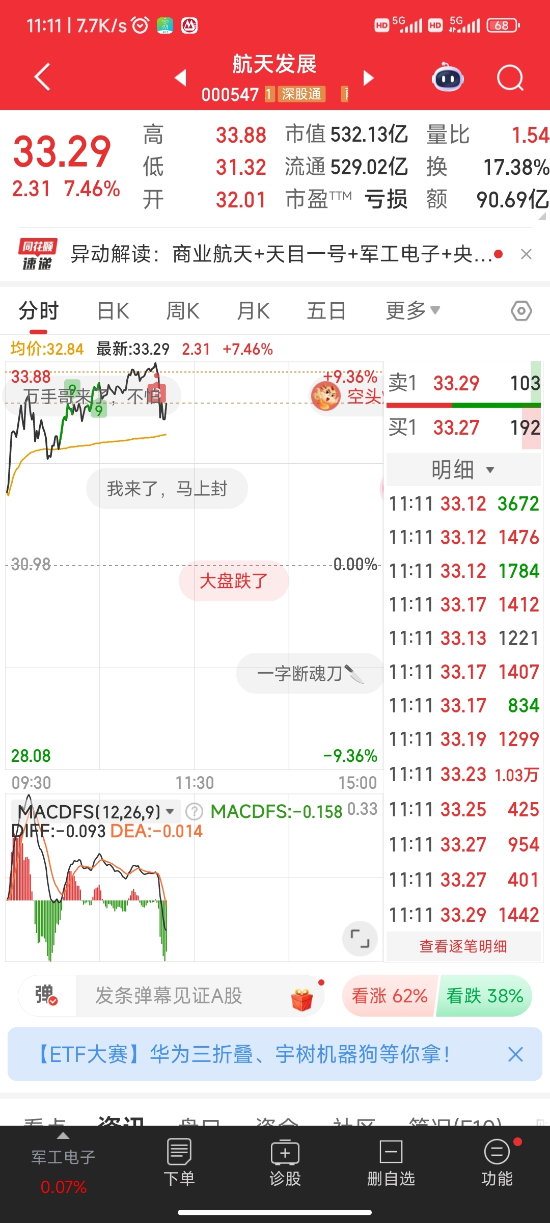 $航天发展(SZ000547)$ 33.75的本,有跟我一样的么,进去就是一碗大面