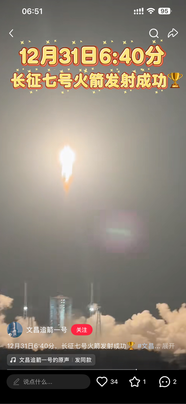 今天早上6:40在文昌长征七号甲火箭发射成功,还在车上的恭喜今天吃肉,航天绝对是