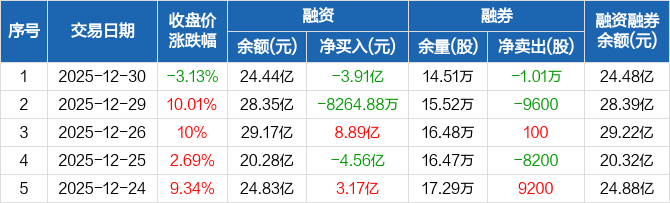 航天发展:融资净偿还3.91亿元,两市排名第四(12-30)