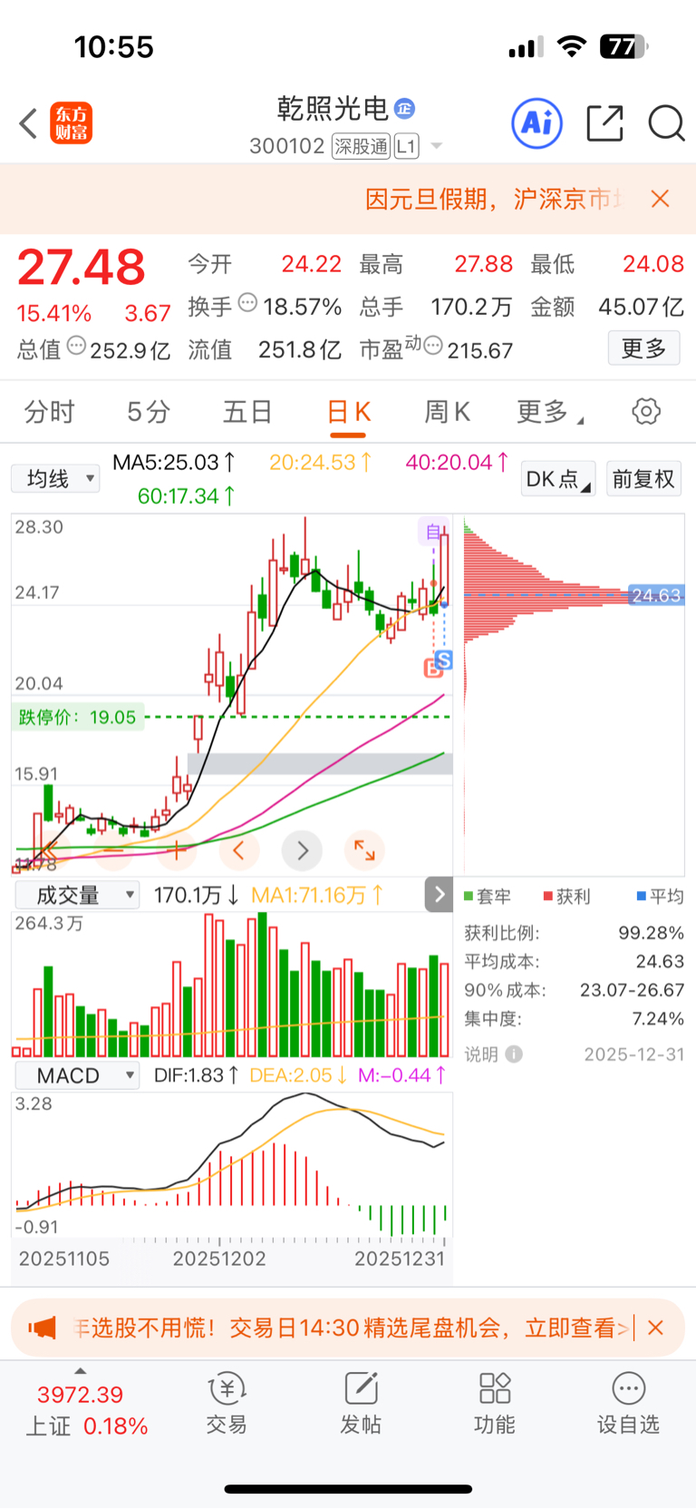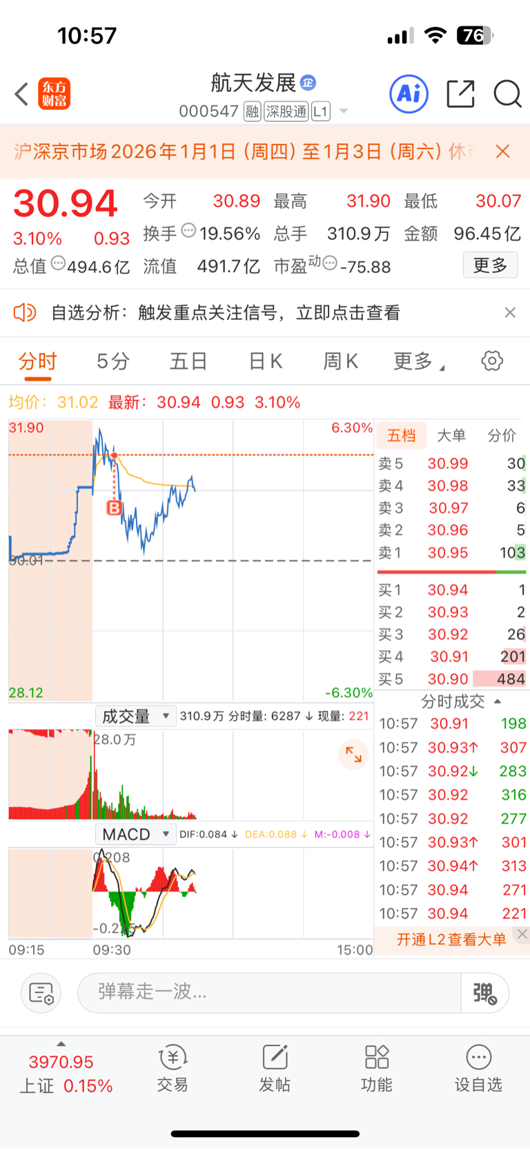$航天发展(SZ000547)$ $乾照光电(SZ300102)$ $北斗星通(SZ002151)$ 记住我们的口诀高价买来低价卖,这样才能赔钱快