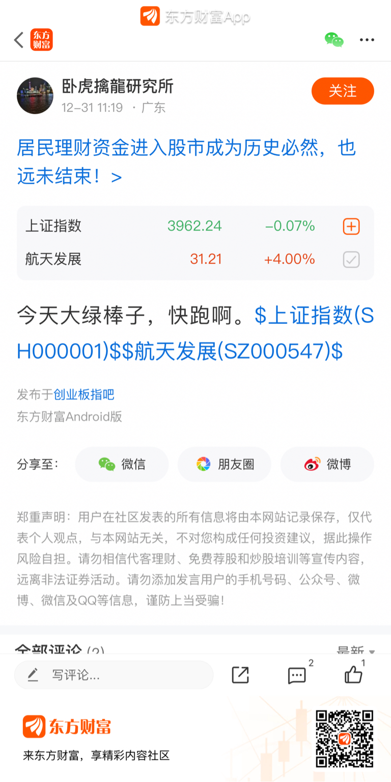 温馨提示: 1.根据《证券法》规定,禁止编造、传播虚假信息或者误导性信息,扰乱证券市场;2.用户在本社区发表的所有资料、言论等仅代表个人观点,与本网站立场无关,不对您构成任何投资建议。用户应基于自己的独立判断,自行决定证券投资并承担相应风险。《东方财富社区管理规定》