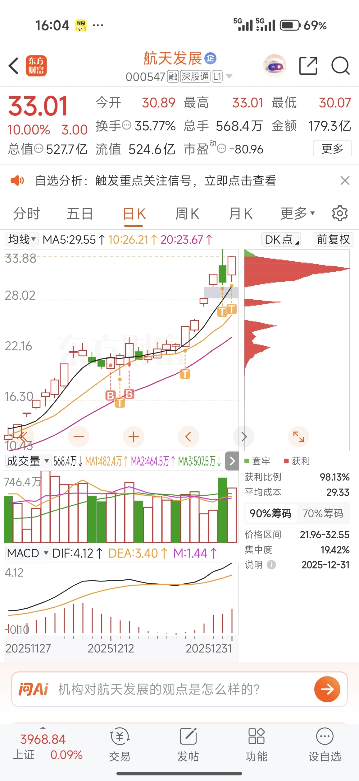 $航天发展(SZ000547)$ 25年12月最后一战收官了,满仓留下半仓。 感谢航发做多的主力,还有做多航发的兄弟们。祝兄弟们2026年马年一路发,龙马精神,马上有钱。马年收益加倍,快乐加倍。