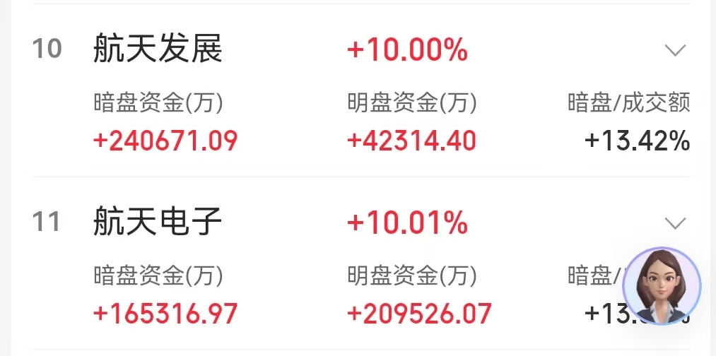 $航天发展(SZ000547)$ 暗盘资金