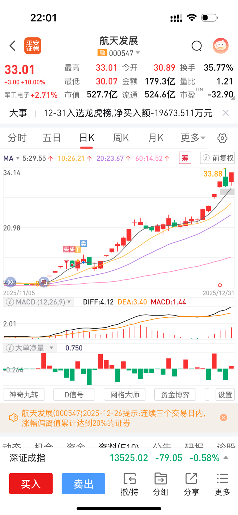 $航天发展(SZ000547)$ 谁能想到我叫同事进的票,他能掉到水下亏钱卖出的是真龙