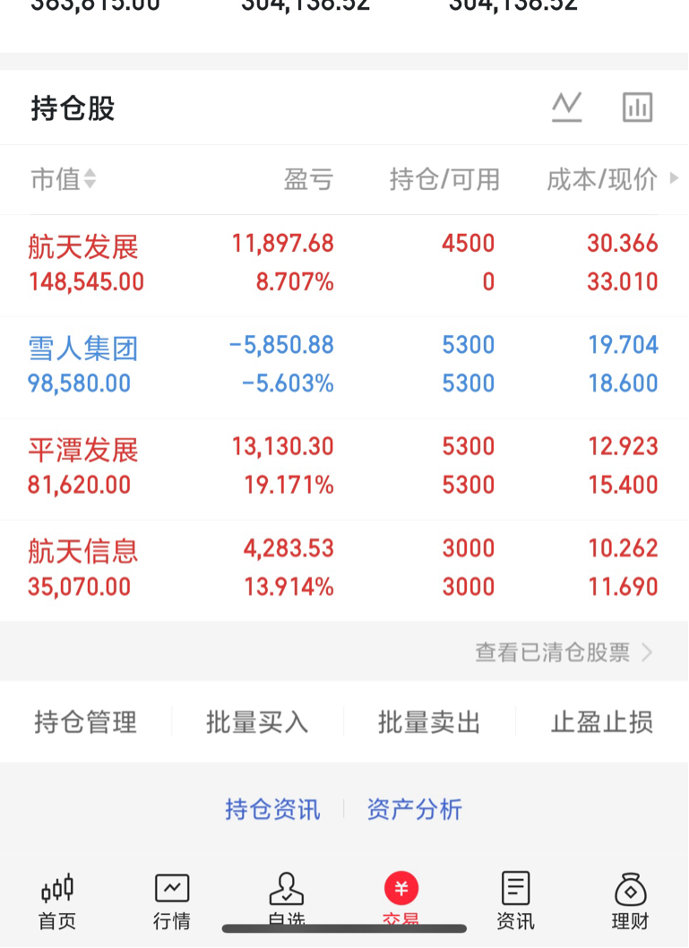 选标的时,我从不会盲目跟风追热点,而是聚焦赛道和基本面:航天发展踩中商业航天题材风口,涨停是趋势兑现;平潭发展有封关政策红利打底,航天信息背靠信创+数字货币赛道,雪人集团有业绩增长和技术壁垒支撑,每只票的持有底气都源于可落地的核心逻辑,而非单纯看股价涨跌。